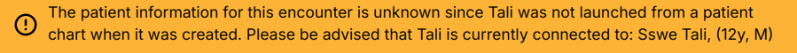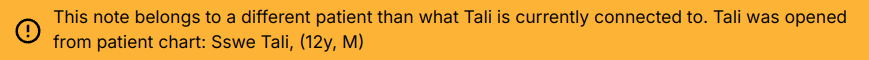 If you're trying to send your Tali note to the patient's chart, get rid of these warning messages by closing the purple mobile EMR page and Tali webpage, then re-opening Tali from the correct patient's chart in PSS.