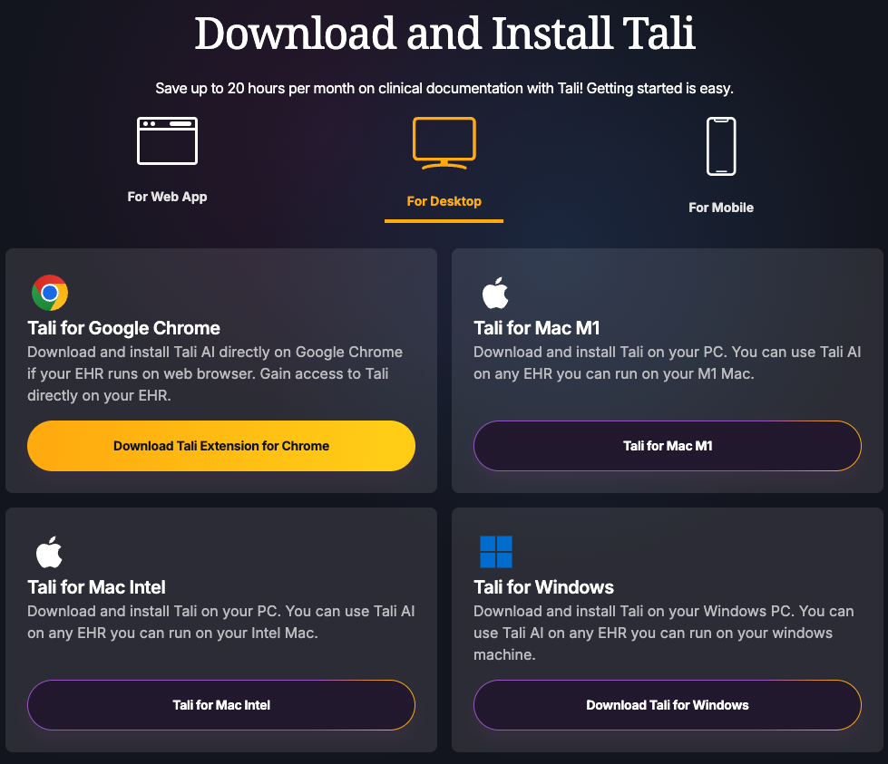 Now that you’ve installed Tali, you may want to connect it directly with your EHR to streamline your workflow. Setting up an integration ensures your notes flow seamlessly into patient charts without extra steps.