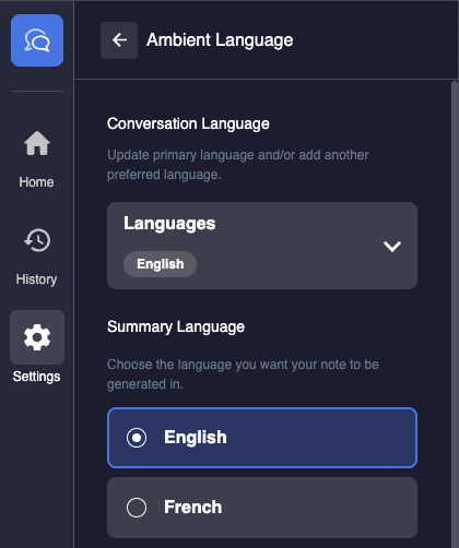 For Mobile and Chrome Extension, navigate to Settings > Ambient Language