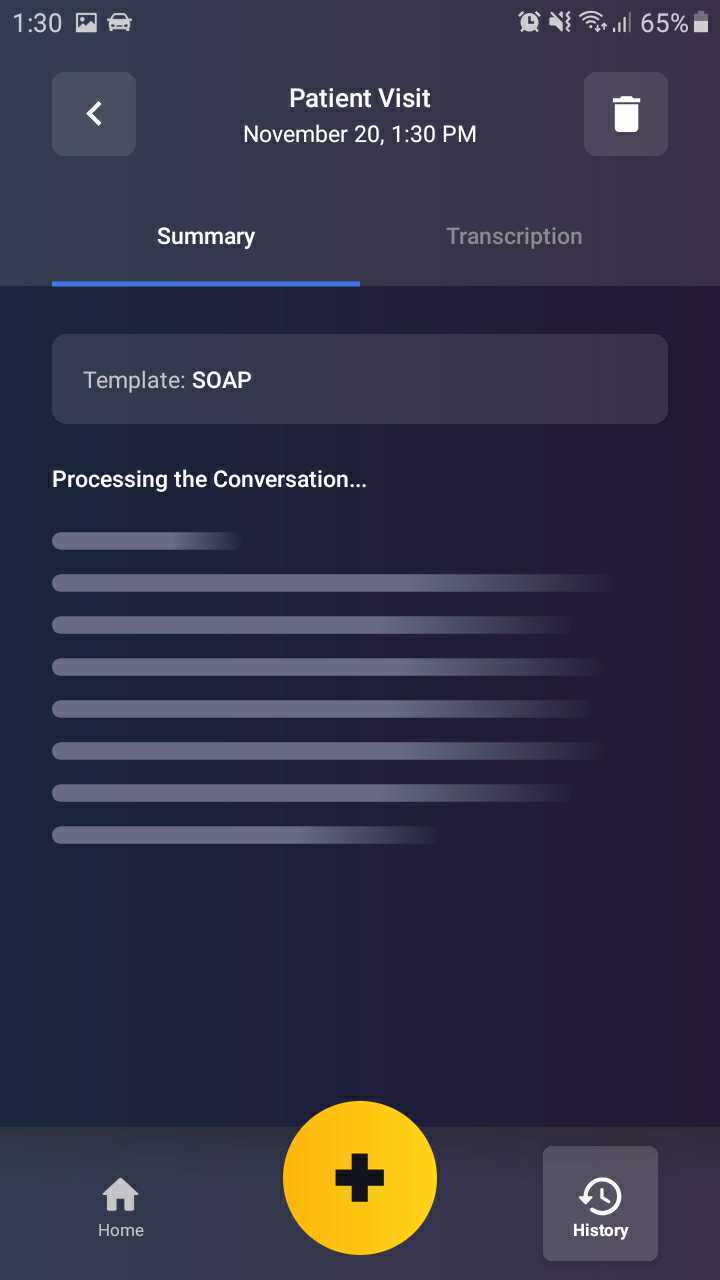 Step 5: When the visit is complete, the “Processing the Conversation” page appears - DO NOT EXIT THIS SCREEN