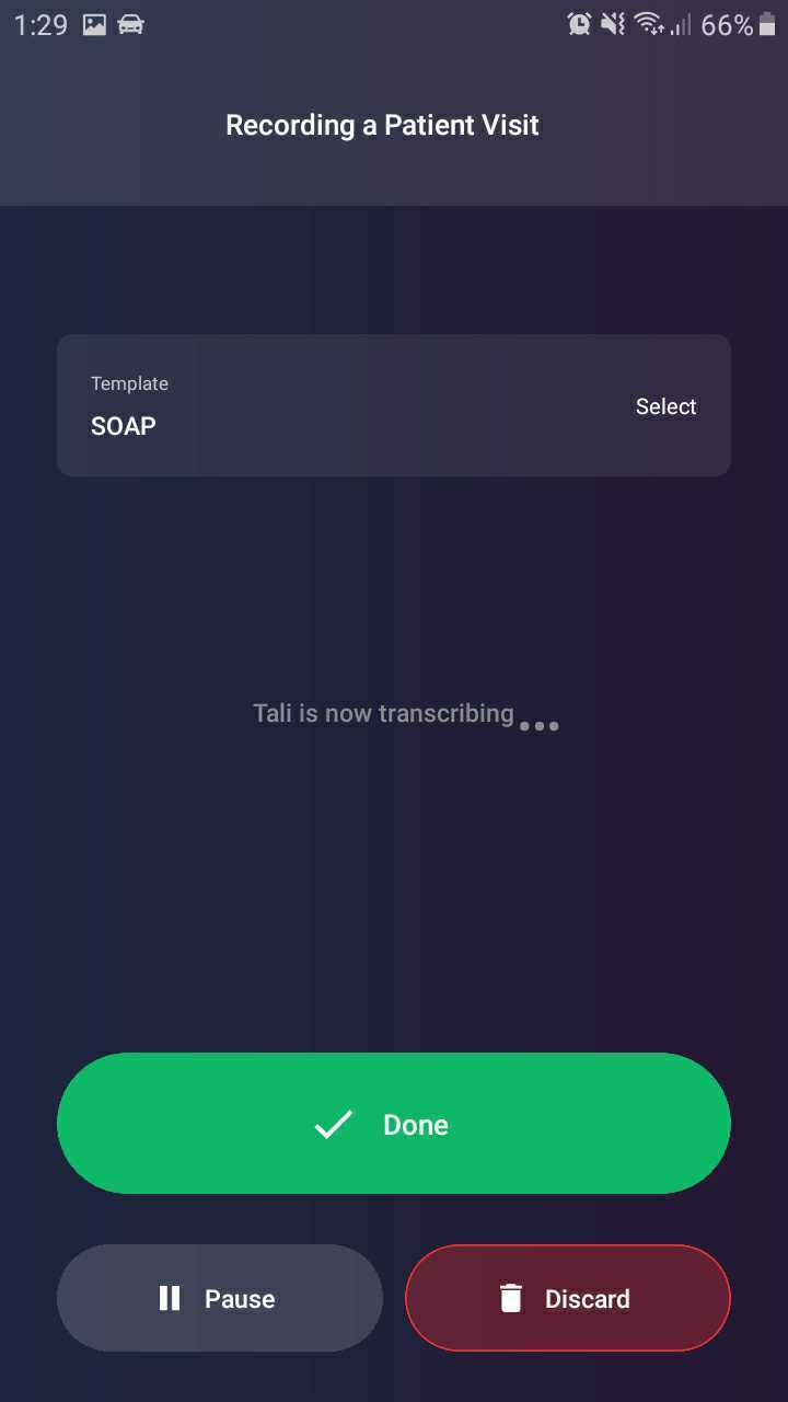 Step 3: Immediately, Tali begins to record. Before clicking on 'Done', choose any alternative template by clicking on 'Select'