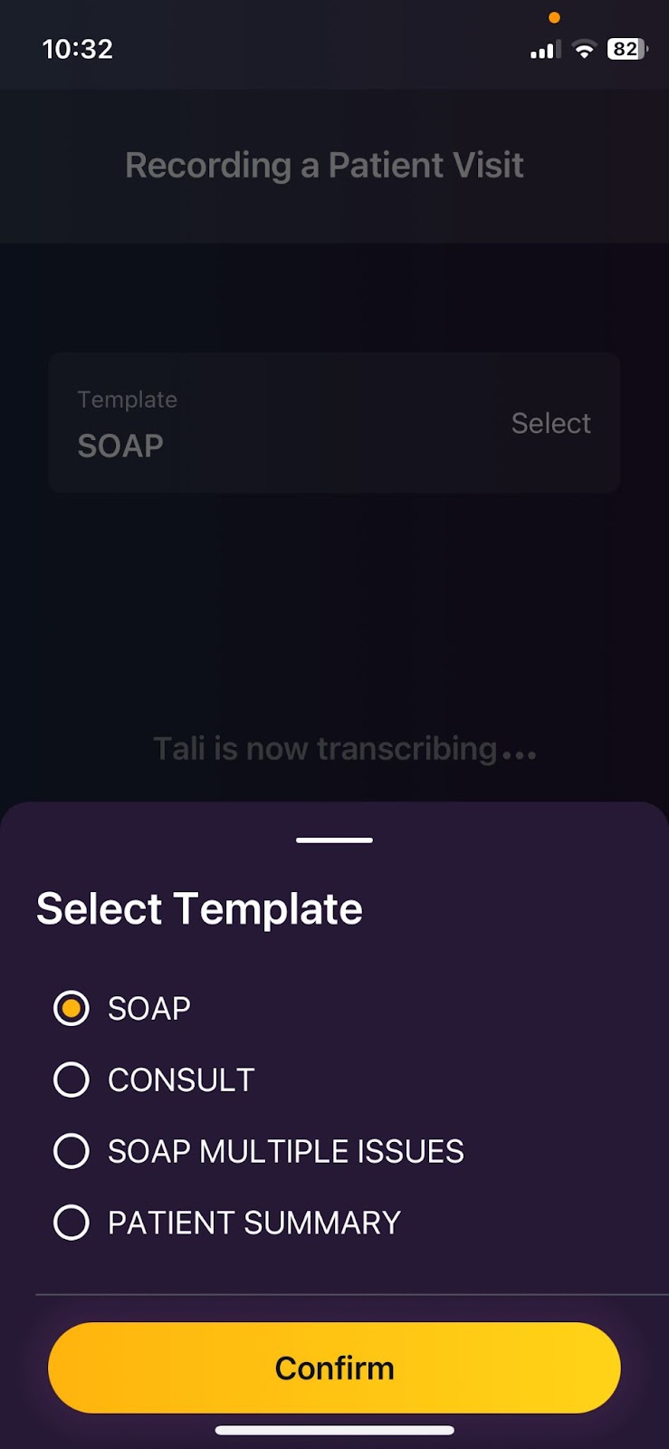 Steps to create and maintain a Patient Visit using AI Scribe on Tali Mobile