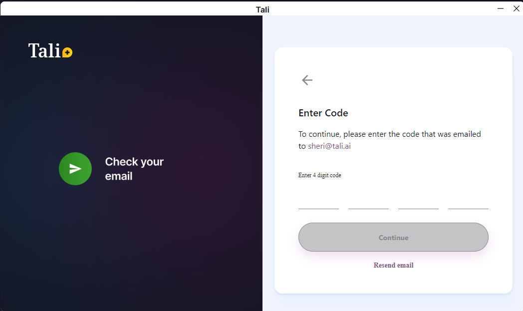 After a successful login, the Tali App will open expanded on your desktop and it's ready to use: