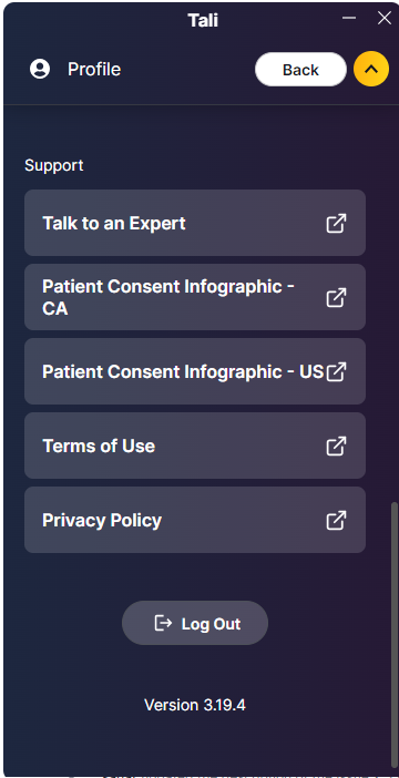After a successful login, the Tali App will open expanded on your desktop and it's ready to use
