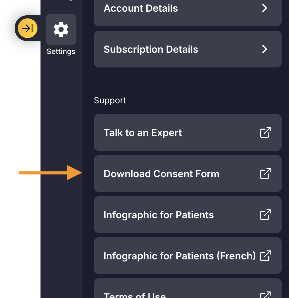 If you need a starting point for capturing written consent, we offer a consent form template in the Tali App in the Settings -> Support section: