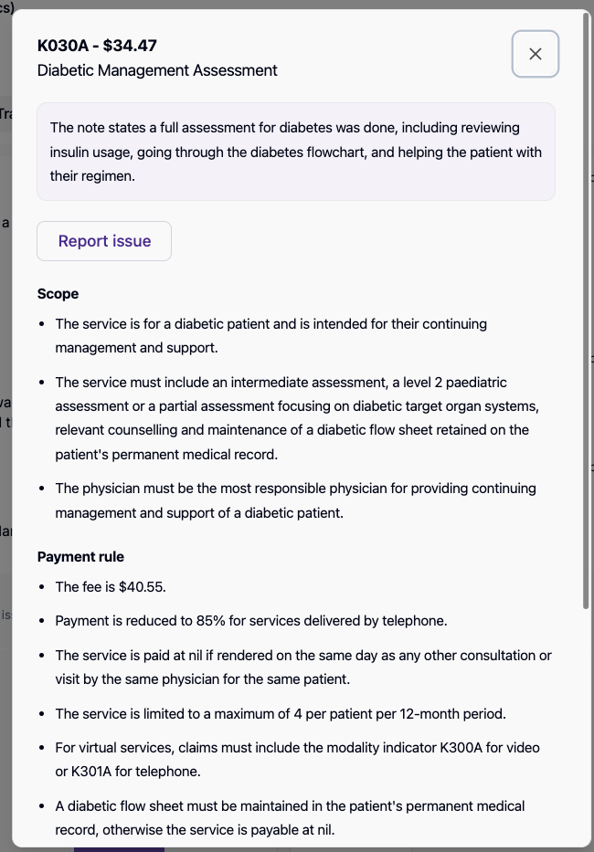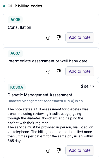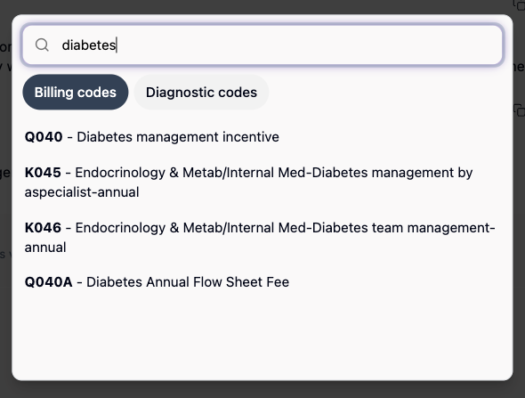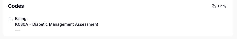 - Wait approximately 5 seconds after the note is generated for the diagnostic and billing codes to appear.