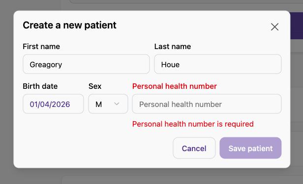 - If patient information is missing, add it manually by clicking the pen icon next to the health number and saving the updates.