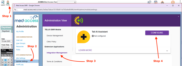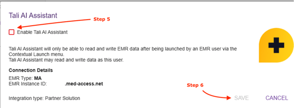 Follow these steps to set up the Tali integration within your Med Access EMR.