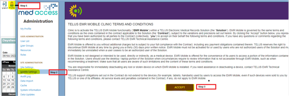 From the Profile page in Med Access, click Mobile Settings on the left navigation bar.
