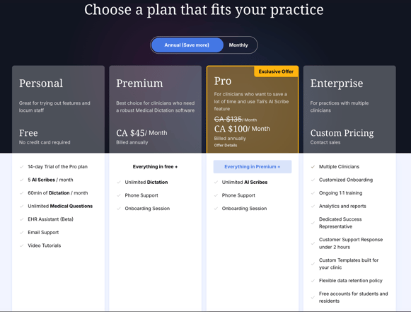 You can toggle between Annual and Monthly billing to view different pricing options.