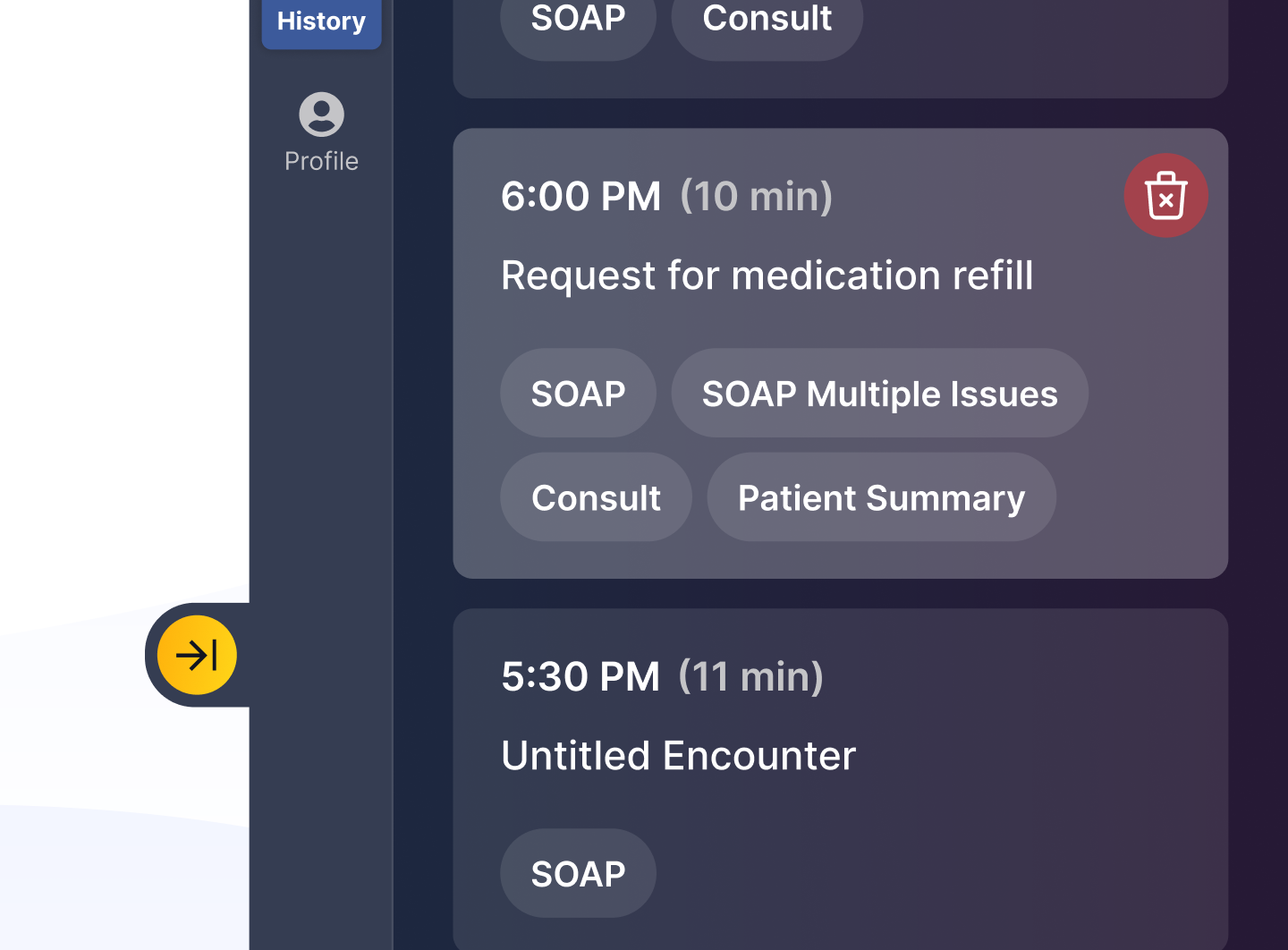 Remarque : la suppression de toutes les rencontres supprimera tous les types de notes et la transcription créés à partir de cette conversation avec le patient.