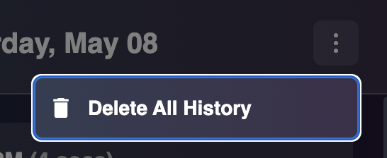 Si vous souhaitez désencombrer votre historique, vous pouvez cliquer sur l’icône des trois points verticaux dans le coin supérieur droit de votre historique et sélectionner « Supprimer tout l’historique ».