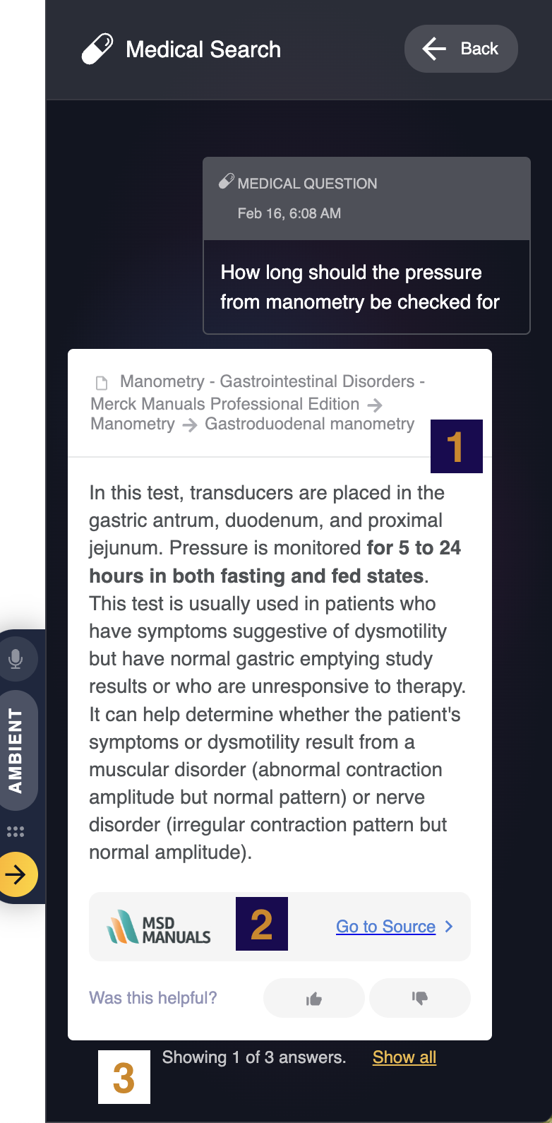 Les moteurs de recherche peuvent fournir beaucoup d’informations utiles, mais il faut souvent du temps et de l’énergie pour en vérifier la source. La Recherche médicale de Tali règle ce problème en s’appuyant uniquement sur des sources fiables et fondées sur des données probantes, telles que : Merck Manuals, Choosing Wisely et OpenFDA. Utilisez votre voix pour poser une question, et les algorithmes avancés de traitement du langage naturel (NLP), les modèles médicaux et la reconnaissance vocale de Tali la transcriront correctement afin de vous fournir une réponse en quelques secondes.